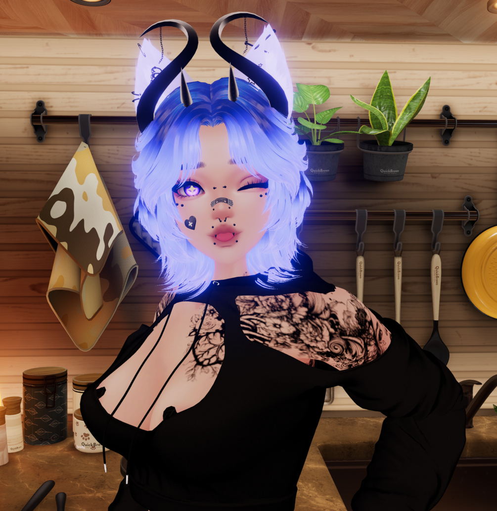 - Accessories: Face Bandaids (Not on Q), Hand Chains (Not on Q), Face piercings, 2 sets of horns, ears and tail toggles. (1 set of horns on quest)